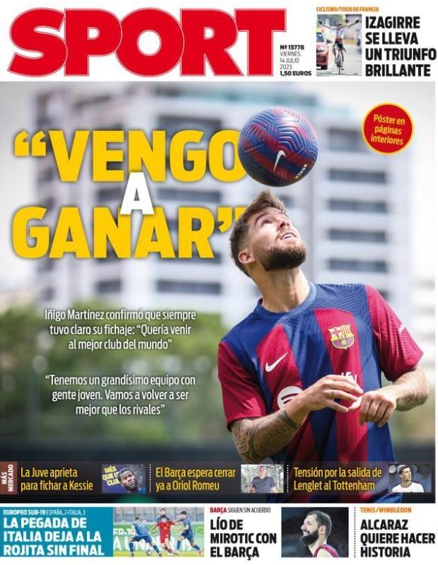 También en la portada de Sport el protagonista es Iñigo Martínez. El rotativo destaca algunas de sus frases: "Quería venir al mejor club del mundo. Tenemos un grandísimo equipo con gente joven. Vamos a volver a ser mejor que los rivales".