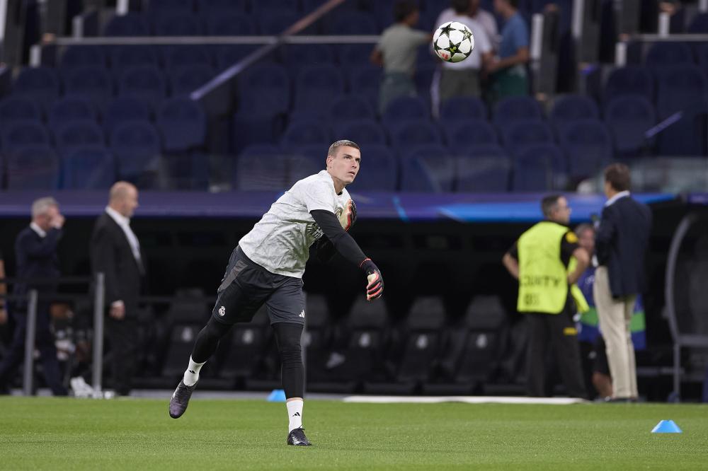 Madrid, Champions League 2024-2025, Real Madrid CF-VfB Stuttgart, giocata allo stadio Santiago Bernabeu. Nella foto: Andriy Lunin