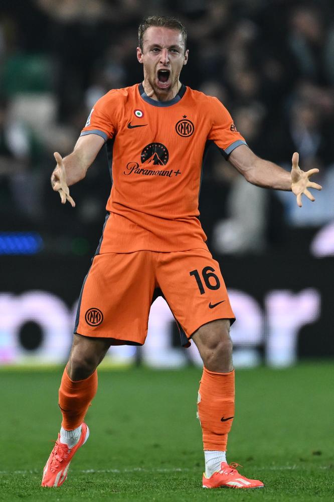 Mg Udine 08/04/2024 - campionato di calcio serie A / Udinese-Inter / foto Matteo Gribaudi/Image Sport nella foto: esultanza gol Davide Frattesi
