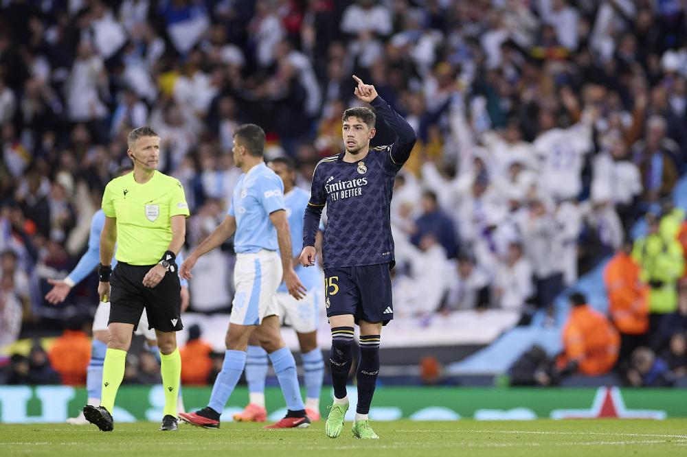 Manchester, Champions League 2023-2024, Manchester City-Real Madrid CF, giocata all’ Etihad Stadium. Nella foto: Federico Valverde