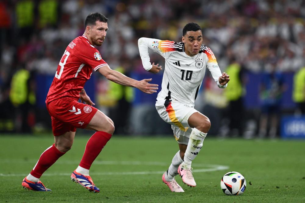Mg Dortmund (Germania) 29/06/2024 - Euro 2024 / Germania-Danimarca / foto Matteo Gribaudi/Image Sport nella foto: Jamal Musiala-Pierre-Pierre-Emilie Hojbjerg