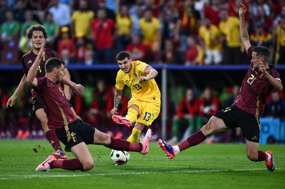 Mg Colonia (Germania) 22/06/2024 - Euro 2024 / Belgio-Romania / foto Matteo Gribaudi/Image Sport nella foto: Mihai Mihaila-Jan Vertonghen-Timothy Castagne