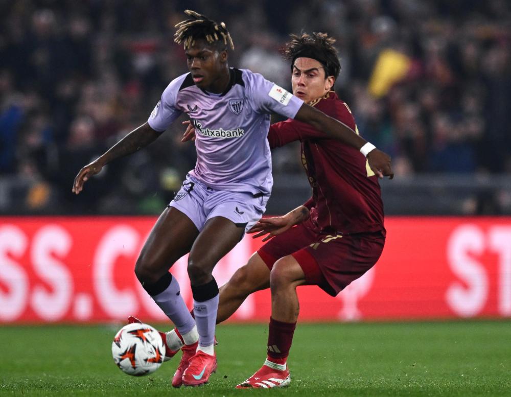 As Roma 06/03/2025 - Europa League / Roma-Atletico Bilbao / foto Antonello Sammarco/Image Sport nella foto: Nico Williams-Paulo Dybala